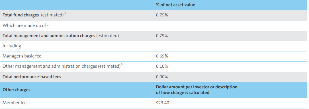The total annual fees for investors in the AMP Growth Fund are 0.79%.