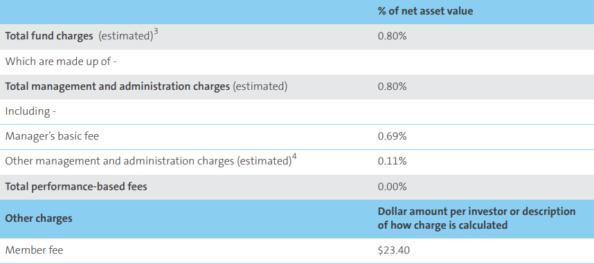 The total annual fees for investors in the AMP Aggressive Fund are 0.80%.