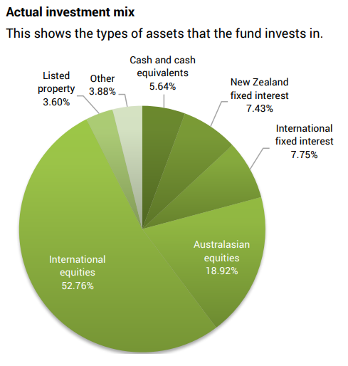 This table shows SuperLife’s top 10 investments in the Growth KiwiSaver Fund, which comprise 52.17% of the fund.